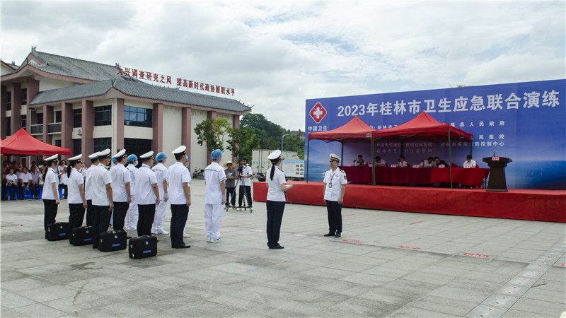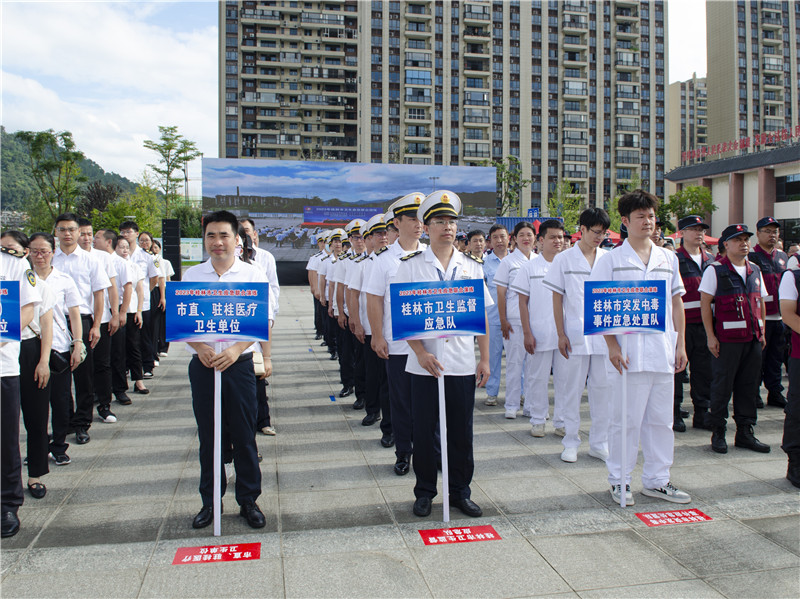 9月8日上午,桂林市卫生计生监督所派出14名应急队员组成桂林市卫生监督应急队,前往永福县参加由市卫健委和永福县人民政府举办的“2023年桂林市卫生应急联合演练”。参加此次演练的还有广西烧爆伤卫生应急医疗队、桂林市紧急医学救援队、桂林市突发急性传染病防控队、桂林市突发中毒事件应急处置队、桂林市核和辐射突发事件卫生应急队共6支卫生应急队伍。